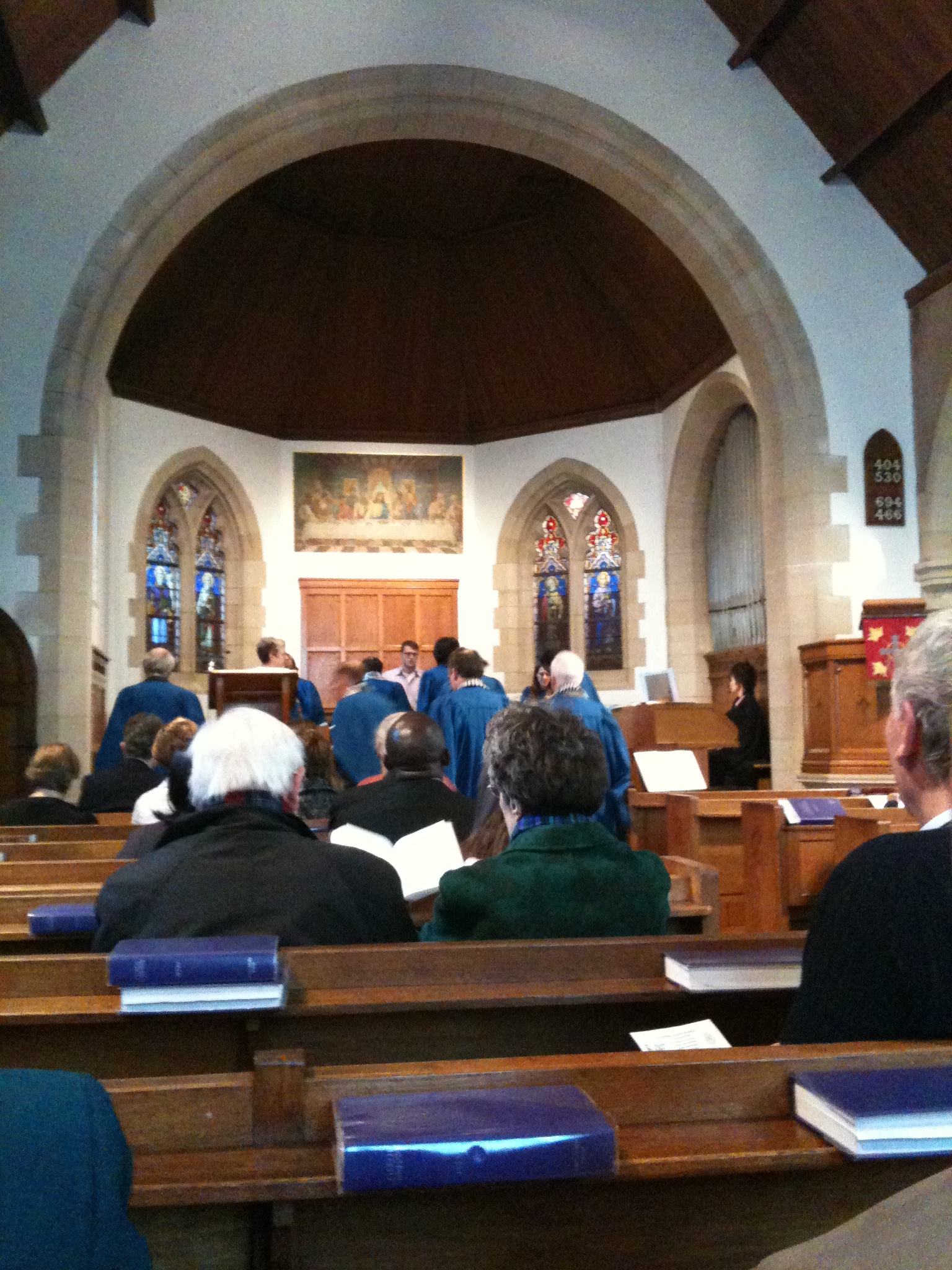 Packed congregation at St Andrew’s Church of Scotland this morning – and a truly international one, too. Forty-nine nationalities. A very warm welcome, a mix of Sydney Carter, Richard Gillard and the Threefold Amen, choir in blue gowns and beautiful Southern African stoles, proper children’s address – and a happy buzz downstairs for coffee afterwards. Met a Canadian who is also just back from Sarajevo – not part of the major EU/US delegation but Canada plays a peace-building role.