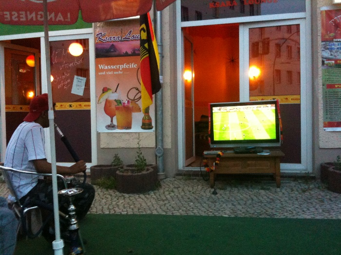 J’ai aimé Berlin – c’est très vivant. J’ai regardé la Coupe du monde finale à l’extérieur du café (il faisait chaud) avec plusieurs gens. Certaines personnes ont bu la bière et les autres ont fumé la hukka.