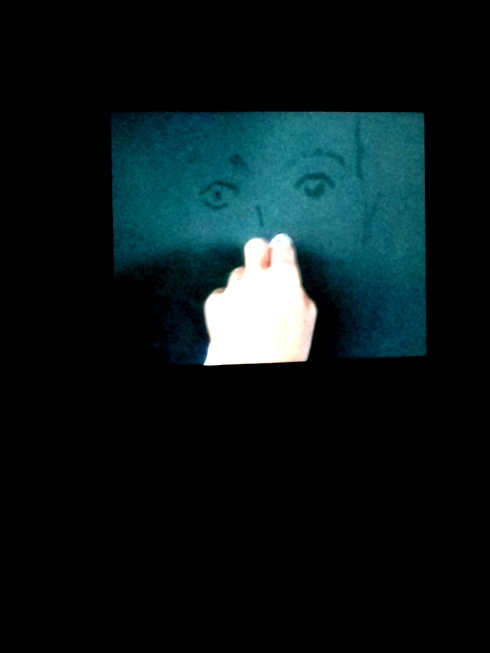 ♦ A video of the artist ‘painting’ a face on steamed up glass (which evaporates as it’s being created, needing to be done again, and again) with an old song, Remembering You, playing in the Baptistry.